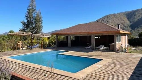 Esta propiedad se encuentra en Reserva Curacaví, en una parcela de 5.000 m² completamente cercada y equipada con casa, quincho y piscina. Es una construcción sólida, con red de luz y agua operativa, portón automático con control y entorno consolidado. La modalidad de pago es contado. La propiedad no cuenta con Recepción Final, pero puede ser tasada por algunos bancos.