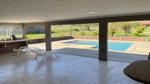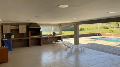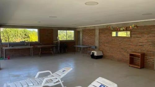 La casa tiene 170 m² construidos y una distribución funcional que incluye tres dormitorios, tres baños, living comedor y cocina americana. El quincho complementa el uso familiar y social con 77 m² construidos e incorpora un baño independiente. La piscina de 8,5 x 4,5 metros aporta valor recreativo al conjunto, junto con áreas exteriores despejadas y árboles frutales.